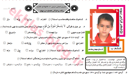 برنده : محمد صادق توحیدی زاده / پایه ی ششم